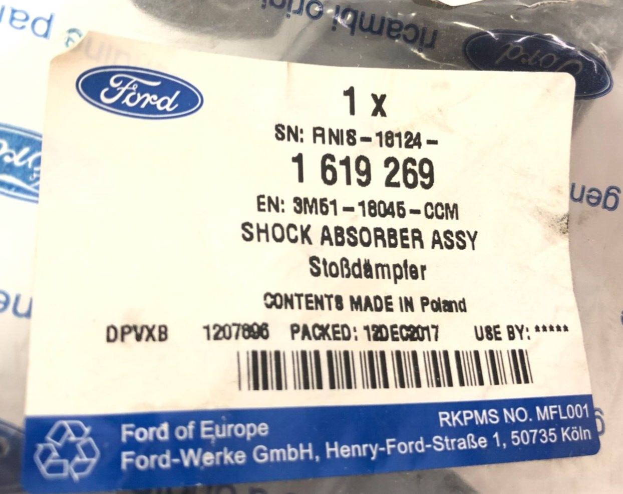 Genuine Ford Focus C-Max/CB4 1.6L Duratec Front Shock Absorber 1619269Part No : 1619269 Supersession : 1234201 1619269Suitable...