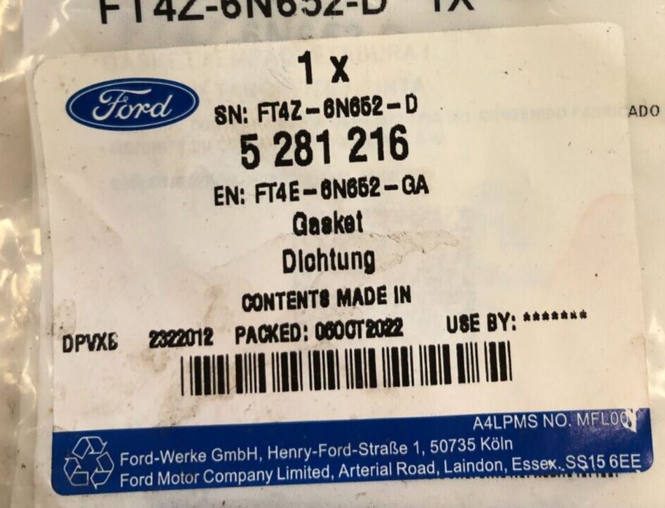 Genuine Ford Turbocharger Hose Gasket 5281216Ford Part No :5281216Suitable For :Ford C-Max CEU 2018-2019From 26/02/2018Ford Explorer CTW...