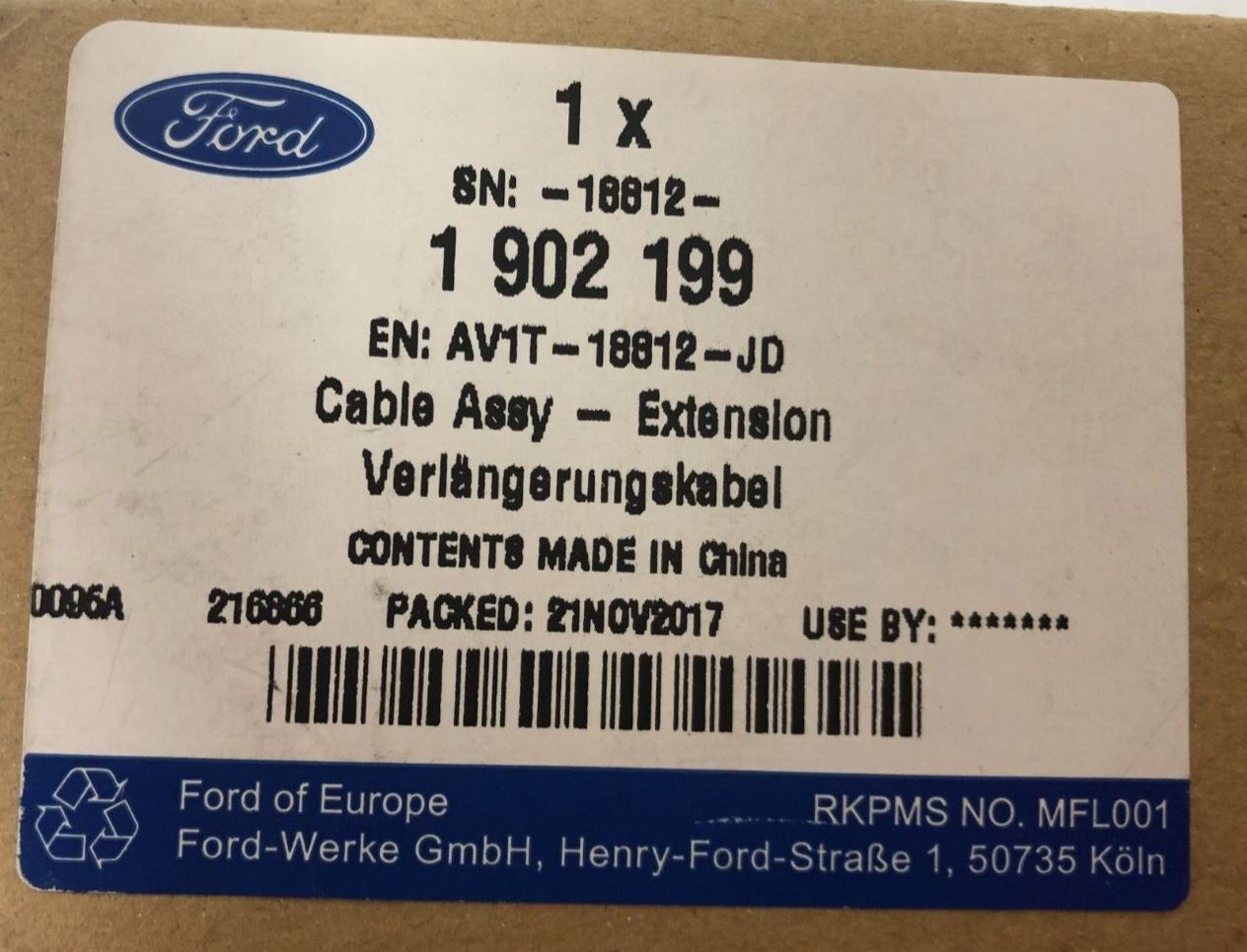 Genuine Ford B-Max CB2 2013-2017 Aerial Cable Assembly (LHD) 1902199Ford Part No :1902199Supersession :1816666182349418482161902199Suitable For :Ford B-Max...