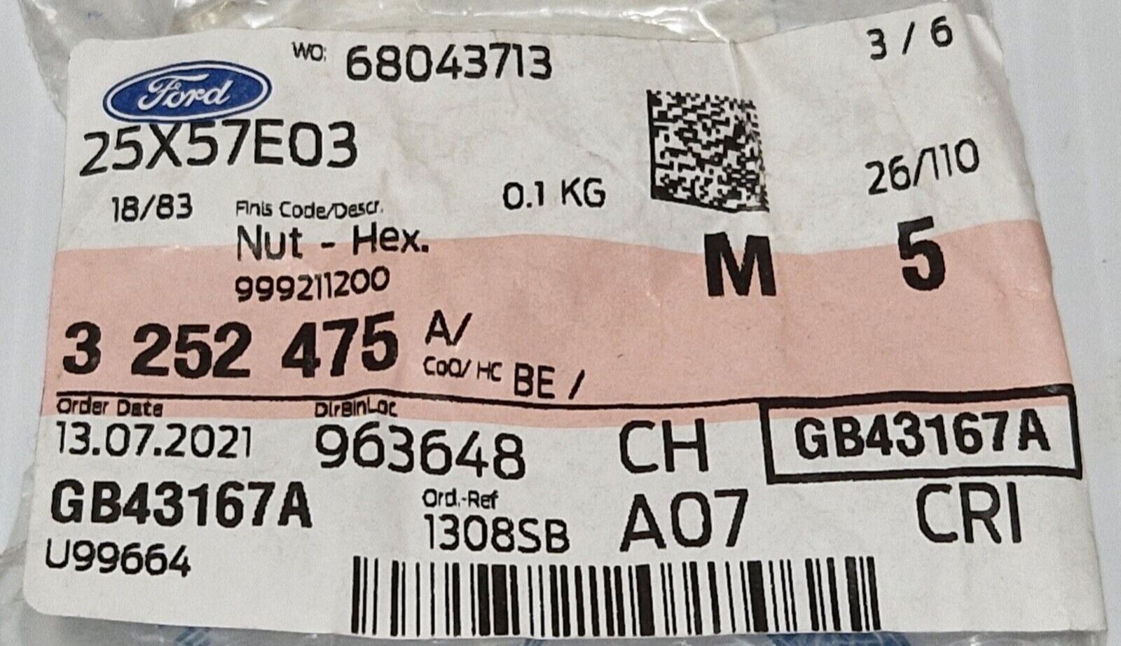 Genuine Ford Everest/Everest/Ranger Front Suspension Arm Nuts x2 3252475 Part No :3252475Suitable For :Ford Everest EP 2009 OnwardsFrom VIN:...
