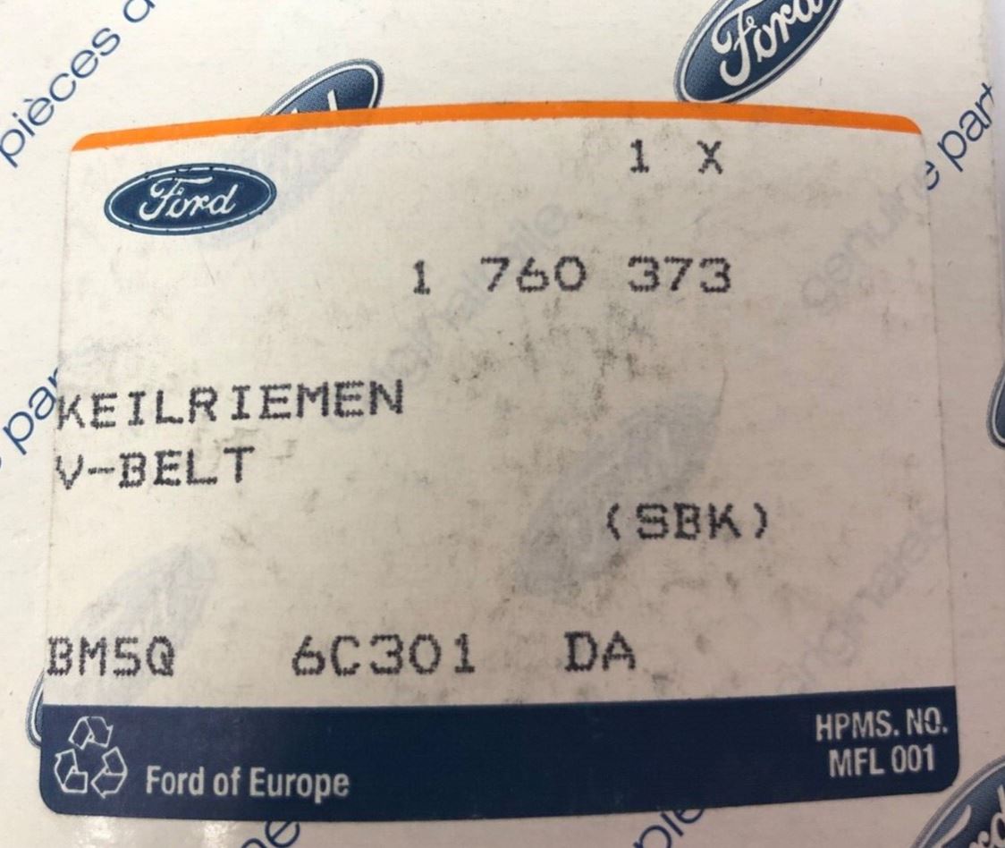Genuine Ford Fiesta CCN/Focus C-Max/Kuga/Transit/Tourneo Drive V Belt 1760373Part No :1760373Suitable For : Ford Fiesta CCN 2013-2019...