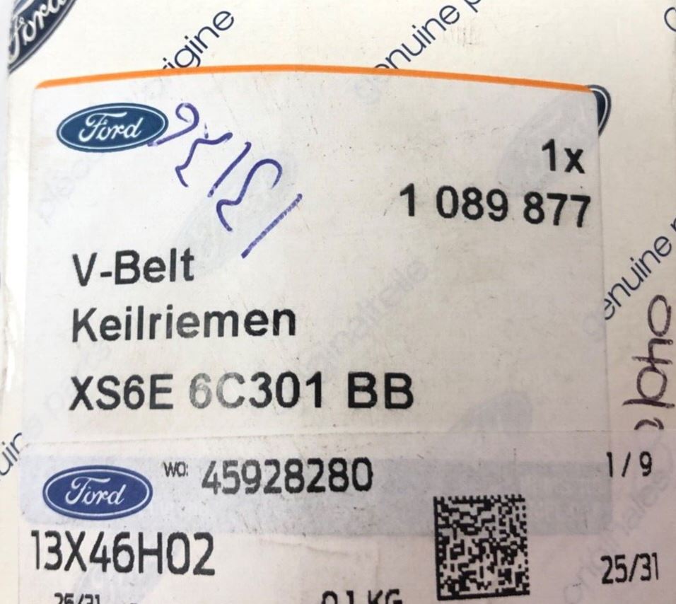 Genuine Ford Fiesta DX/Focus CAK/Ka CCQ/Street KA Driving V- Belt 1089877Part No :1089877Suitable For : Ford Fiesta...