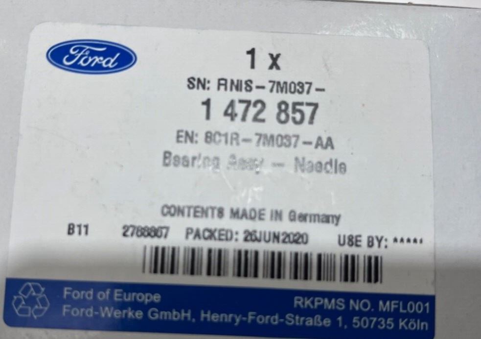 Genuine Ford Focus/Ecosport/Kuga/Mondeo Output Shaft Needle Bearing 1472857Part No :1472857Suitable For :Ford C-Max CEU 2015-2019Ford Ecosport CR6 2017 OnwardsFord Edge...