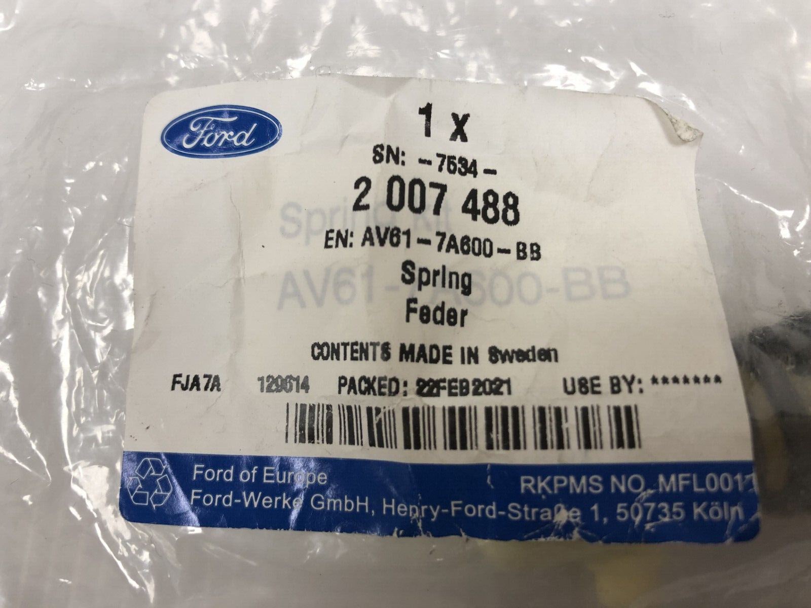 Genuine Ford Focus Kuga C-Max Transit Brake & Clutch Controls Spring Part no: 2007488Suitable for:Focus/C-Max 2007-2008Focus C-Max 2010-2015Focus Cabriolet...