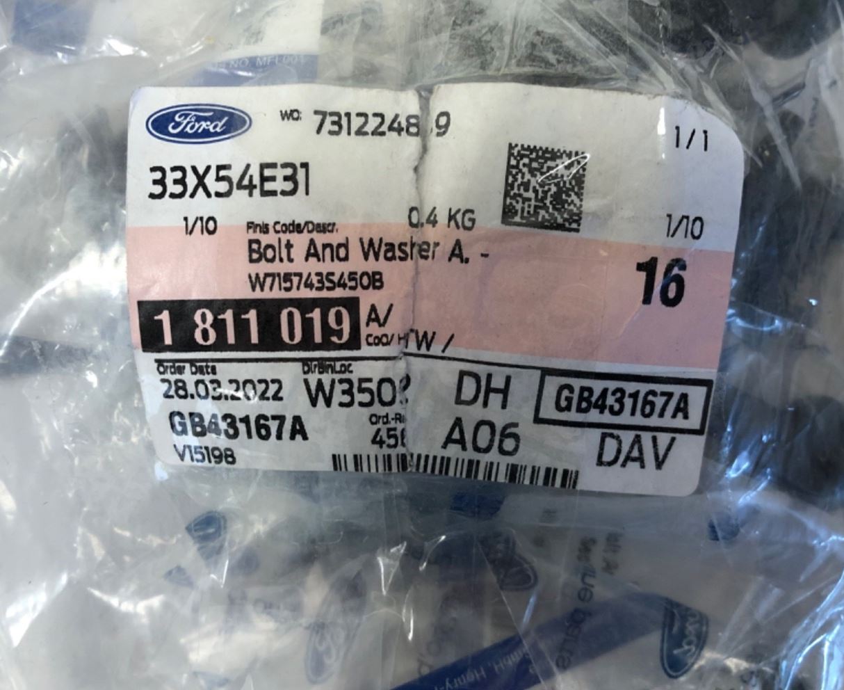 Genuine Ford Ranger TKE 2011+ M8x50mm Hex. Head Bolt And Washer (x16) 1811019Part No :1811019Supersession : 1726883...