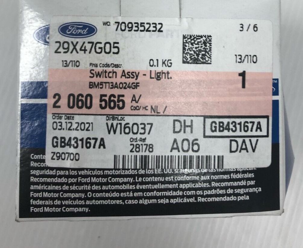 Genuine Ford Transit/Focus Headlight Switch With Headlight Levelling 2060565 Part No : 2060565Suitable For :Ford Focus CB8From VIN...