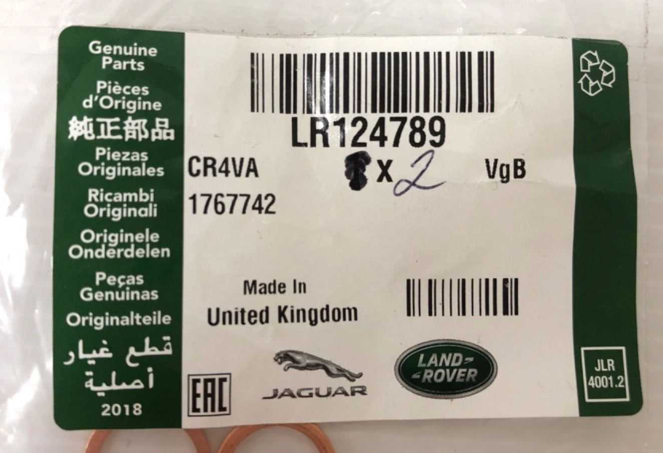 Genuine Land Rover/Range Rover Turbocharger 2.0L Oil Tube Gasket x2 LR124789Part No :LR124789Supersession : LR110428 LR124789 Suitable...