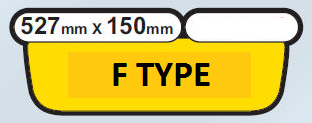 Les plaques jaunes arrière Jaguar F Type sont proposées en deux tailles : 527 mm x 150 mm ou 520 mm x 111 mm (plaque oblongue standard) pour s'adapter à la forme du couvercle de coffre. Toutes les plaques sont fabriquées à partir d'un substrat ABS.