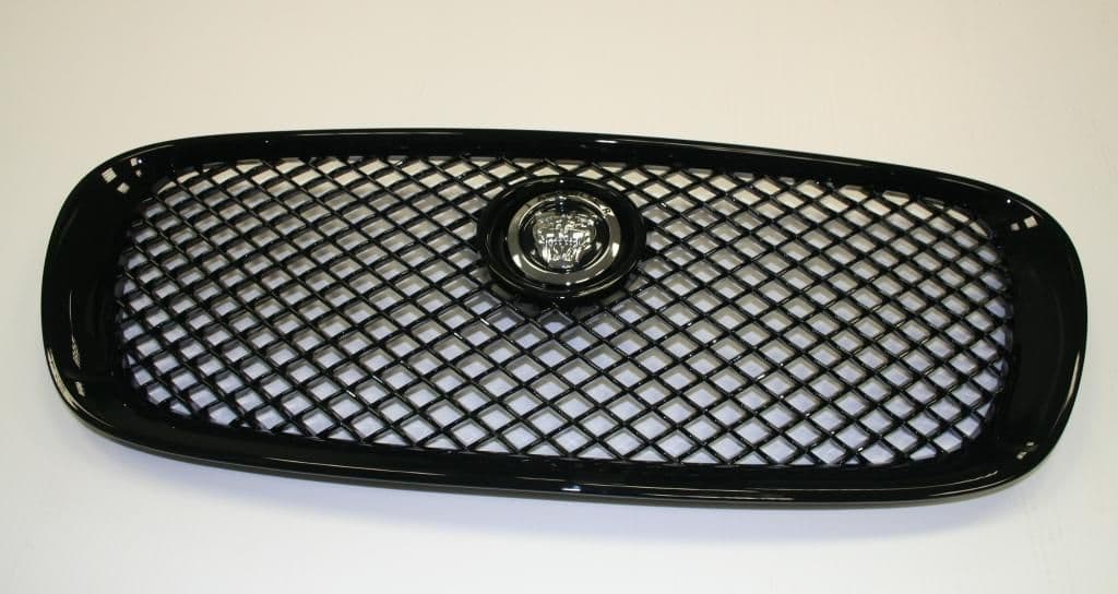 Disponible en 3 styles, maille noire avec contour noir ou maille chromée avec contour chromé ou contour noir avec maille chromée avec badge Jaguar noir monté sur un socle noir - Veuillez sélectionner dans le menu déroulant ci-dessus