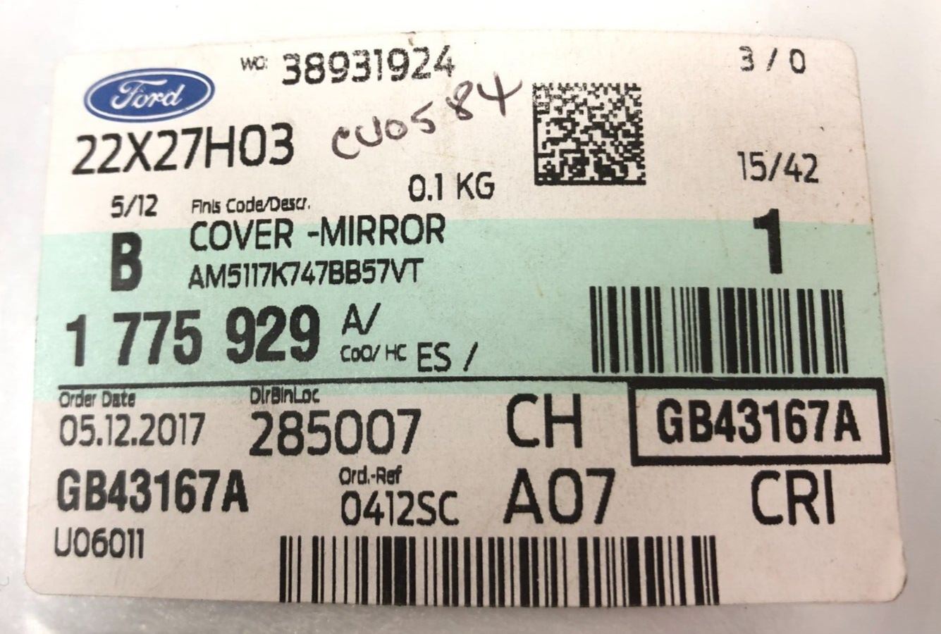 Genuine Ford C-Max CEU / CB7 LH Mirror Housing Cover (In Frozen White) 1775929Ford Part No :1775929Supersession...