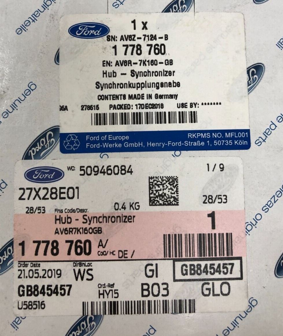 Genuine Ford C-Max/Fiesta 6 Speed Manual Synchronizer Hub 1778760 Ford Part No : 1778760Suitable For :Ford C-Max CEU...