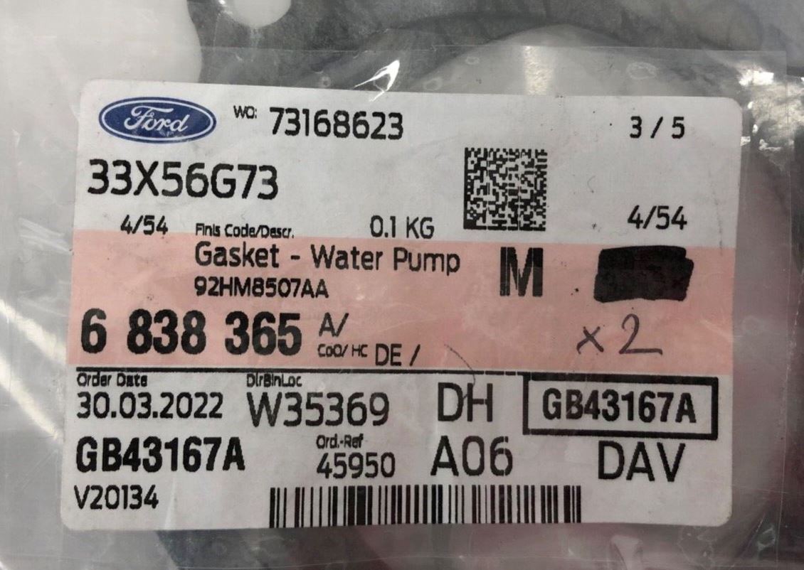 Genuine Ford Escort/Granada/Sierra/Transit Water Pump Gaskets x2 6838365Part No :6838365Suitable For :Ford Escort FA 1995 OnwardsFrom: 31/12/1995Ford Escort/Orion...