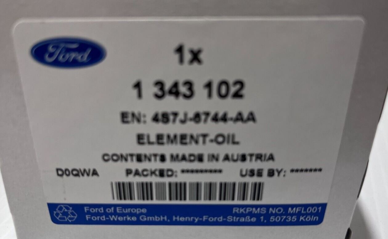 Genuine Ford Mondeo / S Max Galaxy Oil Filter 1343102Part No :1343102Suitable For :2.3L I4 16V DOHC...Ford...