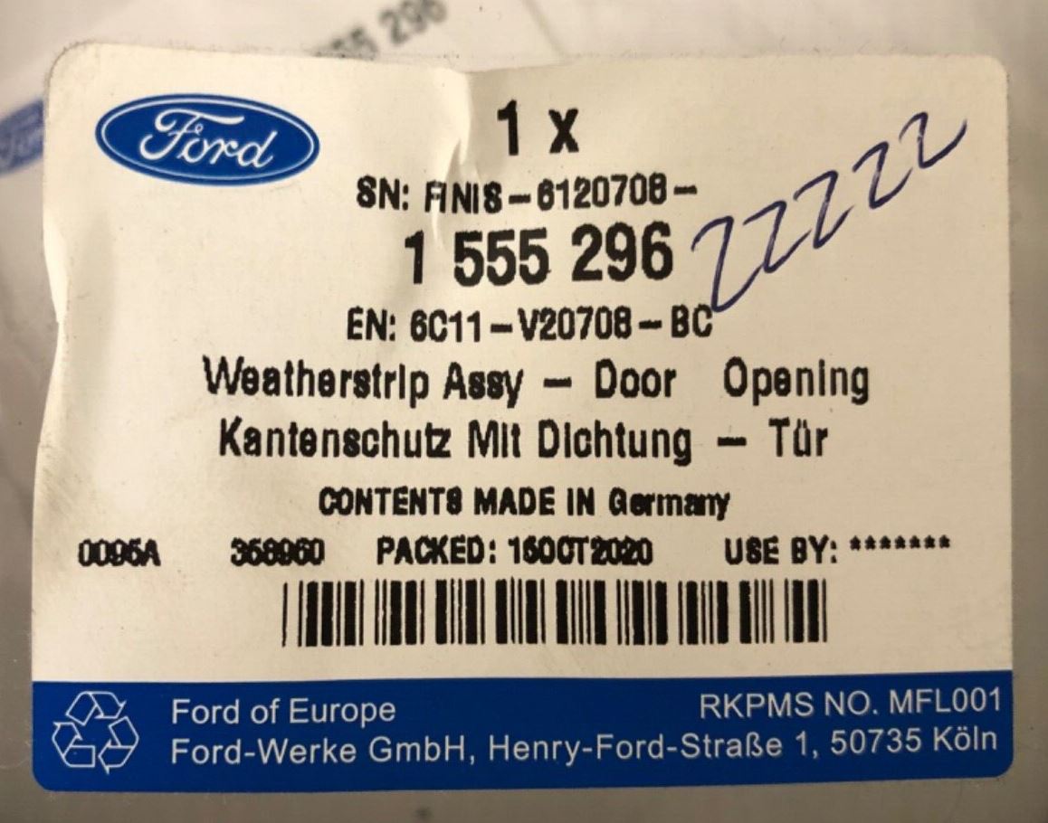 Genuine Ford Transit FY 2005-2006/TT9 RH/LH Door Opening Weatherstrip 1555296 Part No :1555296 Supersession : 1387719 1431919...
