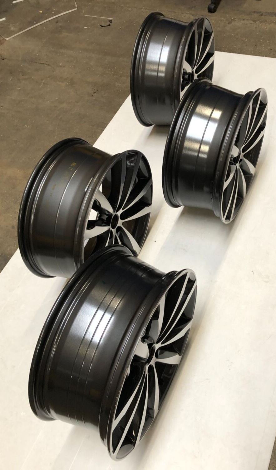 These wheels are new in original Jaguar packaging. They have some storage marks (pictured) but these are on the edges so will be covered and unnoticeable once tyres are fitted