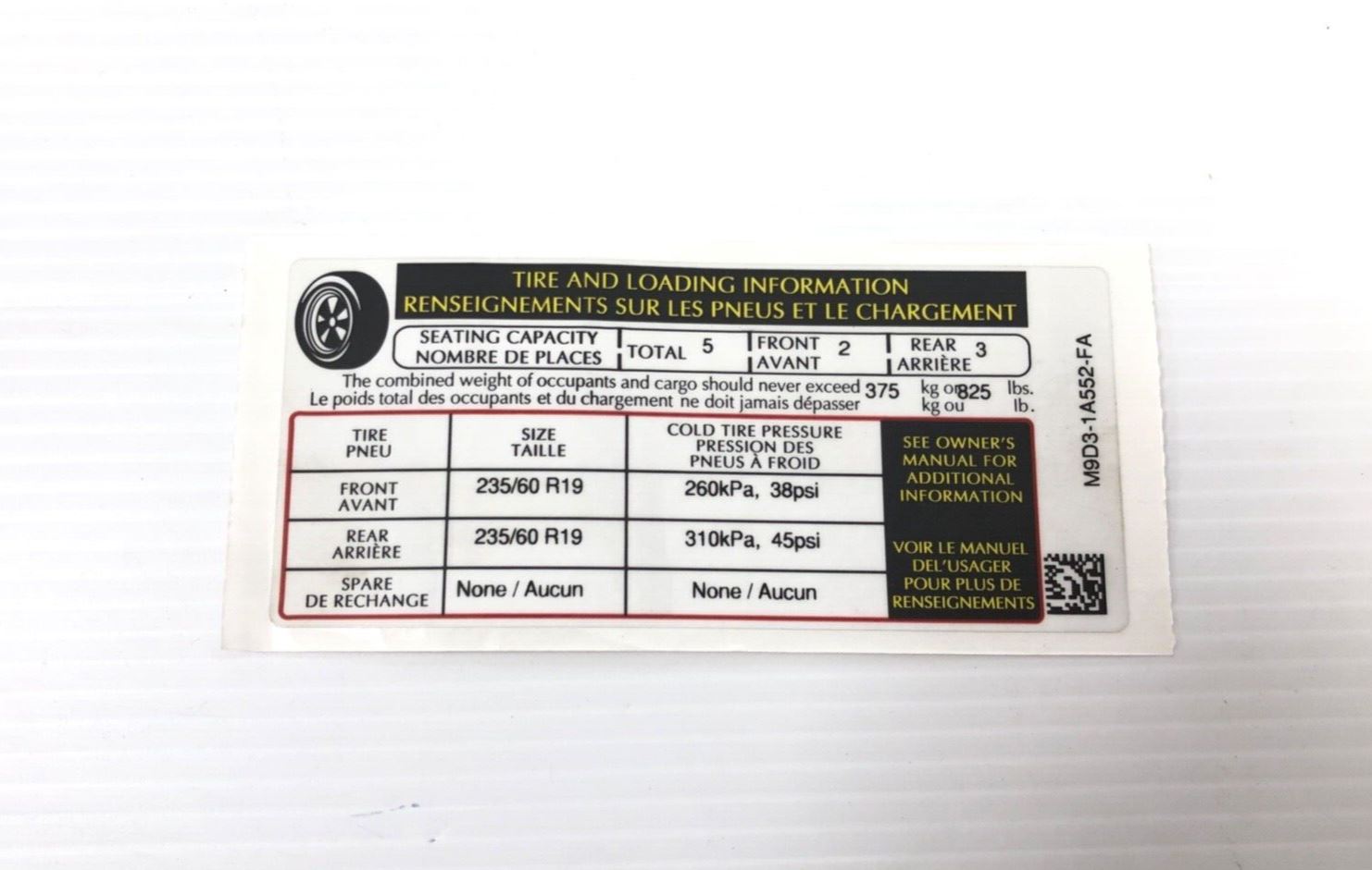 Tyre Recommend Plate-English/French