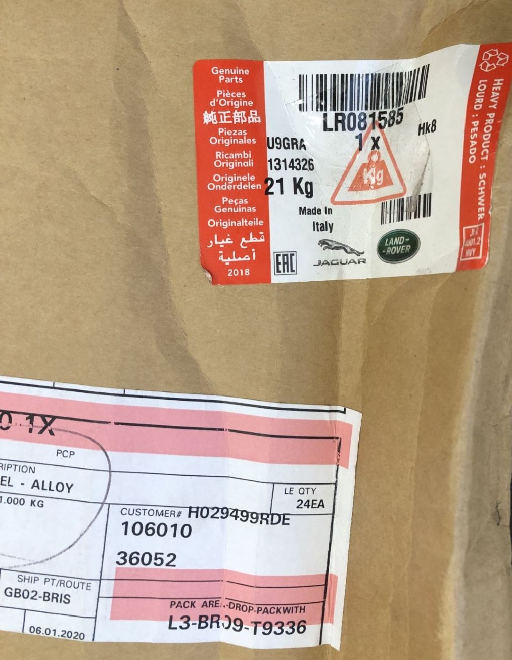 Genuine Land Rover Discovery 5 Gloss Black 21" 9.5J Alloy Wheel - LR081585