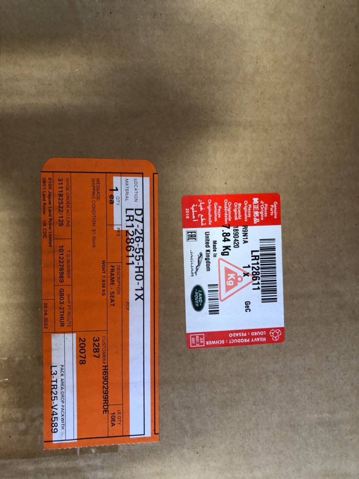 Genuine Range Rover 19+ Right Hand Passenger Front Seat Back Frame LR128611 Part No :LR128611Suitable For :Range...