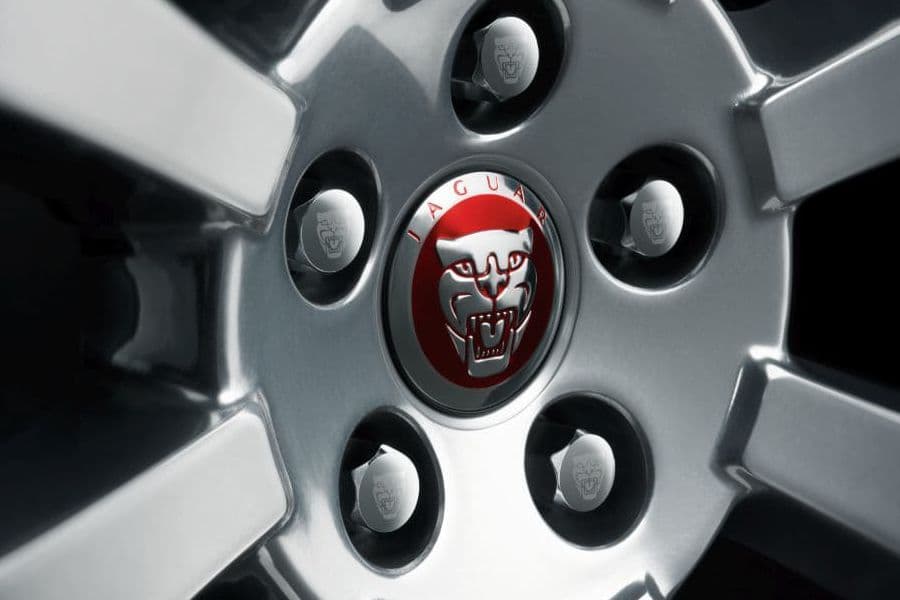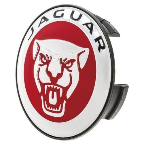 A genuine Jaguar distinctive red wheel centre badge featuring Jaguar 'Growler' branding and offered for all available wheels.